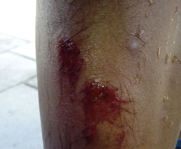 “我们顺利游过Looking Glass,原路返回时就出问题了。surge不断把我们猛地推向前,然后猛地拉到后面。如果没抓紧石头,就会被扯向后,身体在石头间乱撞。我游得不够快,没在推力时游到前面一块大石头抓住,然后被瞬间扯到后面,还得抱着相机,一只手根本不够力抓石头!我感到呼吸越来越急速,呼吸头也随时有被surge拉走的危险。听到潜水电脑“哔、哔、哔”地叫,且感觉到潜水电脑(表)带子(戴在右手)勾住了闪光灯(左手拿相机)的光纤线,那个情形我根本没办法松开。当时我紧咬着呼吸看了看还有100BAR。在挣扎中,我被扯到了水面。Looking Glass里面水晃得很厉害,不小心还是会被拍到礁石上(后来潜友还说那里有漩涡,surface很危险)。”