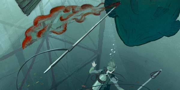 Danny正在享受有他短暂的潜水生涯中最好的时光之一。各个条件都很完美。能见度好得似乎能看到无限远的东西。大鱼盘旋的石油钻机附近,他和他的妈妈一起潜水,他刚刚用他的鱼枪打到一条大石斑。