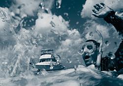 潜水员从船头进入水中,如同教练指示的那样,Jason抓住绳子并试图开始他的下降,但他却无法正常将BC中的空气排出,在水面挣扎了几分钟直到最后在教练的协助下排出空气,接下来,这一次潜水由坏转向糟糕。