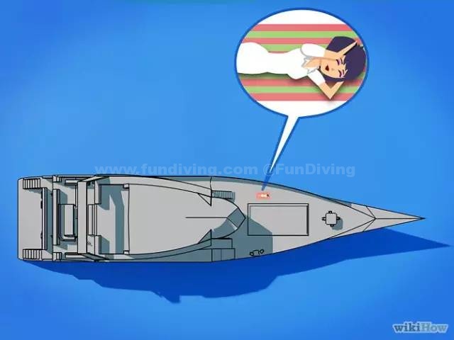如果你在甲板上过热,你会晕船的风险就增加。戴上一顶帽子,避免太阳直射你的头和脸,潜水间坐在一个阴凉的位置,脱下或者揭开全部的潜水衣。