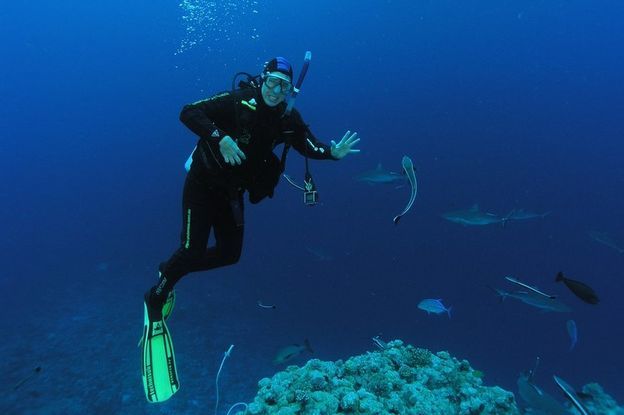 戴夫·艾伯特在鲨鱼出没的海中潜水