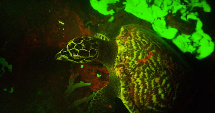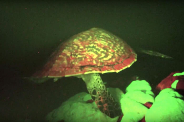 生物学家对《美国国家地理》说:“我们看到的红光有可能是附着在龟背上的藻类,但绿光绝对是海龟本身的。”