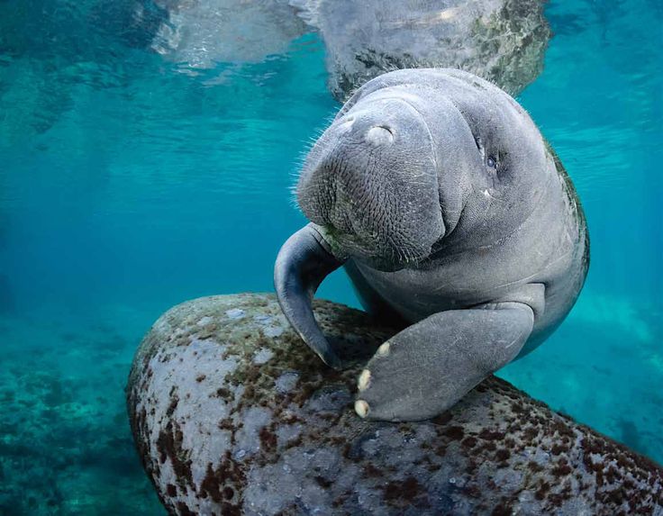 这是唯一能让我兴奋的。期待着海牛出现的种种迹象,雾气从清晨的海湾中缓缓升起,夜间温度比50年代来的低。然后他们就出现了。就像数以百计的朝圣海牛,开始缓慢的向水晶河的淡水泉漫步。一旦他们到达这里,不做任何花哨的动作——他们不会在水面上摇动它们的鳍,也不会一群群的游动。他们的吸引力在于它们的天然呆。谈到海牛,实在不能自已,我把它们都拟人化了。它们发出深沉而缓慢的声音。深皱纹,皮质地的,虽然皮肤光秃秃的,但是看起来像羊毛毯一样舒服,柔滑但不柔软。