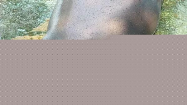 一头亚马逊海牛在水族馆的台阶上休息