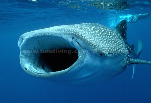 小朋友们,我是鲸鲨,是全世界个头最大的鲨鱼,我全身布满了像白色星星一样的小斑点。我的嘴巴非常大,但是我只吃大海里的小型动植物,我的嘴巴里有几千颗带钩子的小牙,至少有11-12排,我的牙很好,每年都要换两次牙呢。我吃东西的方式很特别,先用嘴巴喝一大口水,再用腮把水过滤出来,水里的小生物就会留在我的嘴巴里,被我吞进肚子。