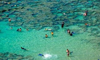 恐龙湾(Hanuman Bay)是来夏威夷的游客最喜欢去的潜水的地方。水浅,浪小,鱼多,风景美丽,那里有各种天然的珊瑚礁石和热带鱼类。