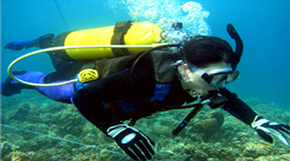 潜水教练统一给大家做潜水指导、潜水培训,分发潜水装备;分批乘坐快艇观光美丽的西冲标志“赖氏州”--情人岛,体验海上风驰电掣的快感,抵达小岛附近后由潜水教练陪护下海潜水;在水下体验大自然带来的美妙,观赏大海中美丽的珊瑚和热带水生物