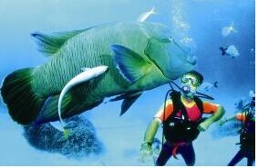 海龟湾(Turtle Bay)位于大堡礁凯恩斯海域,您可在此与“杀手”来一场面对面的亲密接触。这是一条重达 35 公斤的硕大毛利濑鱼,等待着潜水师来喂食。 看一看“糊涂蛋”(Dopey),是在此栖息的一种海龟,还有巨蛤和几种不同的海参。 鹿角珊瑚丛内藏匿着许多小珊瑚鱼。 软珊瑚和硬珊瑚完美交合在一起,注意看飞盘珊瑚的下方,是不是徘徊着鳟鱼、细鳞,还有偶尔出现的尖吻鲈鳕鱼