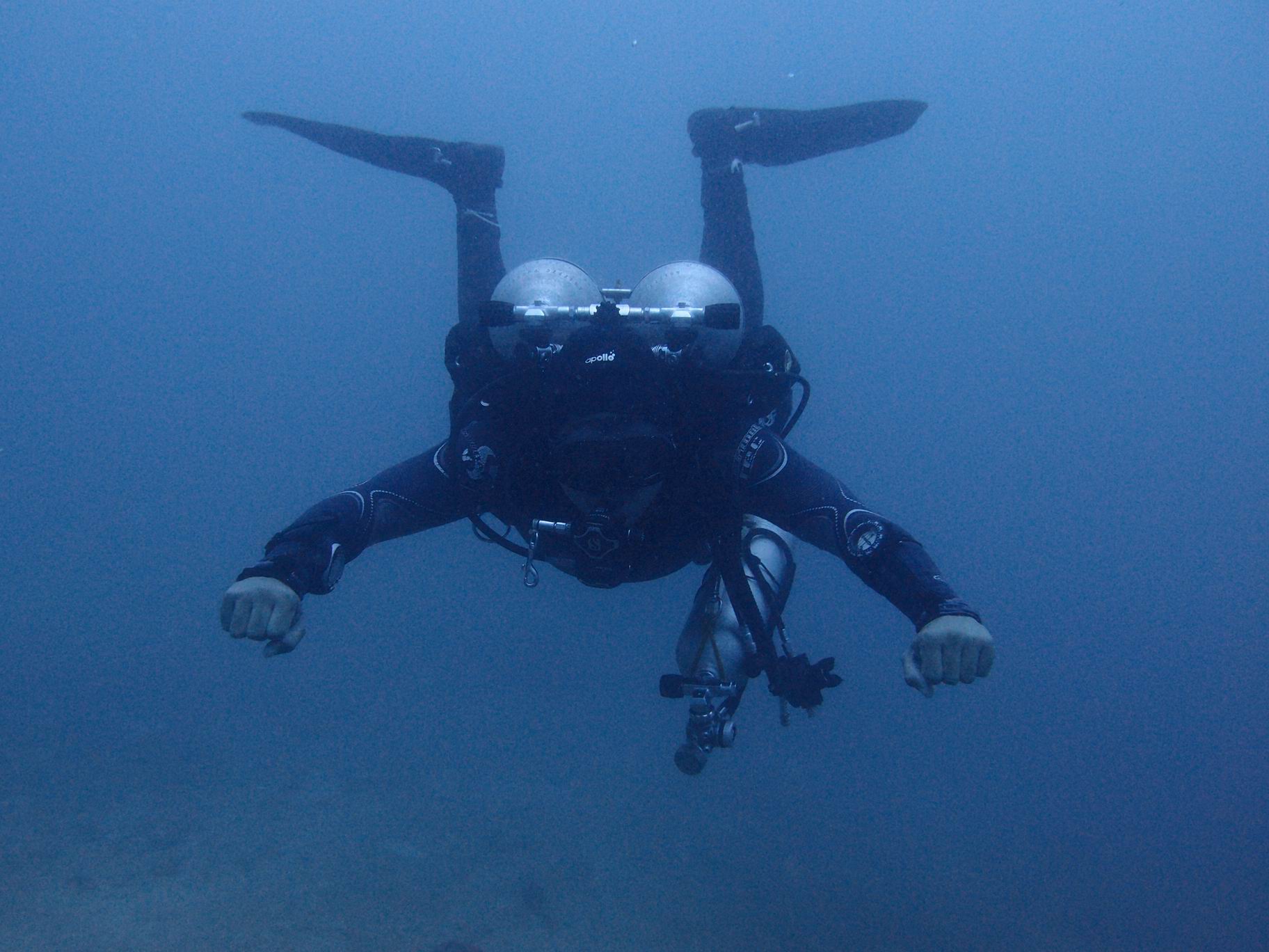 这是潜水员最基本的功夫了,初学潜水的人熟悉潜水装备的实地操作,以及各项基本动作后,尽量保持身体的轻松,维持正常的呼吸,耳边清楚听见自己的呼吸声,以及气泡呼噜噜的声响,随着深度增加,间歇的做着平衡耳压的动作,同时注意仪表的各项数据。待即将达到预定深度时,开始断断续续的少量为BC充气,直到停止下沈,也不再上浮为止,这就是中性浮力。说来容易,可是维持这种中性浮力并不是一件十分容易的事,尤其当不断的改变深度时,随时都在保持充气与排气的操作。中性浮力并非是一直保持在水层中稳定的停在一定的深度,而是会随着呼吸呈现些微的起伏。当吸气时肺部鼓起,身体会慢慢上浮,呼气出来时除了听见气泡声之外,也能感觉自己正缓慢下沈,所以中性浮力的状态是会随着充气而略微起伏的。BC内部的气量多寡也是随时都在调整的,目的也是为了浮力的控制。除了下沈和飘浮在水面上之外,BC的冲泄气也是为了维持中性浮力。但是充气动作的进行绝对不是一直充气,若感觉到身体已经上浮才停止充气,那就已经充气过度了。正确做法应是以点按充气阀的技巧,每次充气不超过一秒钟,让身体在水层中感受到些微充气对浮力的影响。