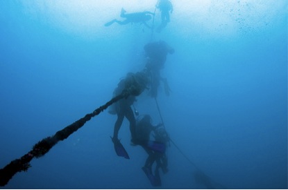 下潜绳,水流较强或是紊乱时,有下潜绳比较容易控制下升与下沉。