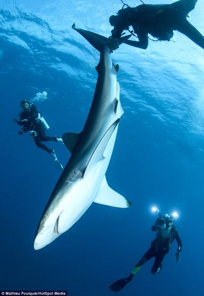 了让鲨鱼平静下来,照片中的的Jorge温柔地抓住鲨鱼的身体并让它呈垂直的状态。这一令人难以置信的的瞬间被来自法国的海洋生物学家Mathieu Foulquie见证。俩人在古巴的女王国家海洋公园里潜水时发生了如此奇特的事。