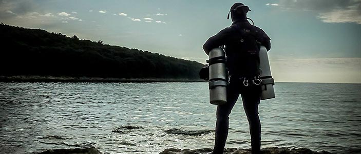 使用两支侧挂气瓶潜水,完全独立的气瓶和潜水供气。如果遇到空气不足或用完的问题,只要换用另一支即可。