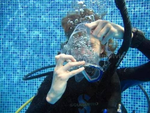 四:面镜排水怕鼻子呛水。