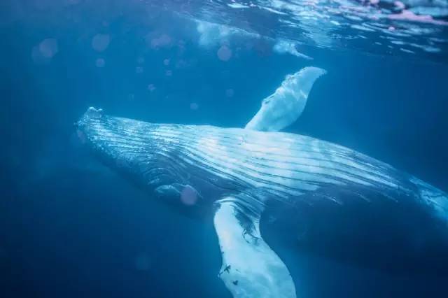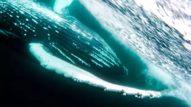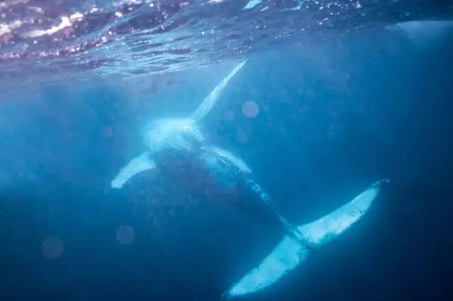 第三就是那无与伦比的合声,在海面下能听到大翅鲸的巨大的声音,似悲叹、呻吟、又或颤抖,如长吼,抑扬顿挫,交替反复,因为在水下是没办法判别声音的来源,所以会让人有一种四面楚哥的感觉。