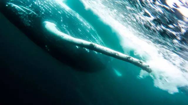 第一个是垂直上升,大翅鲸前缘具不规则的瘤状突起,突然从海底破水而出,高高上跃,然后身体优雅的向后弯曲,然后砸落水面时,溅起巨浪。