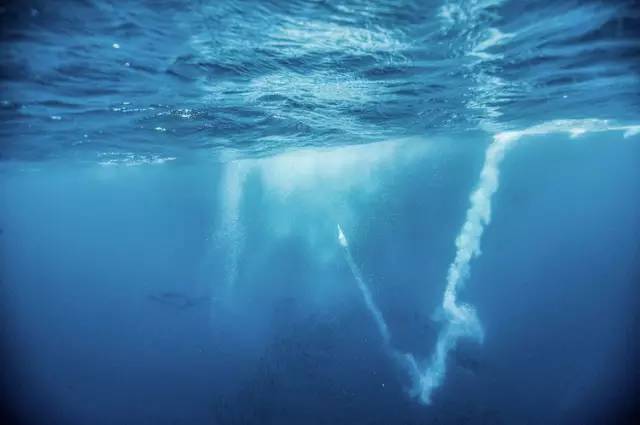 第二个翘尾急潜,20吨左右的海中庞然大物先翘起巨尾,然后头朝下直入水中,带着巨大的旋涡,迅速消失在深蓝之中。