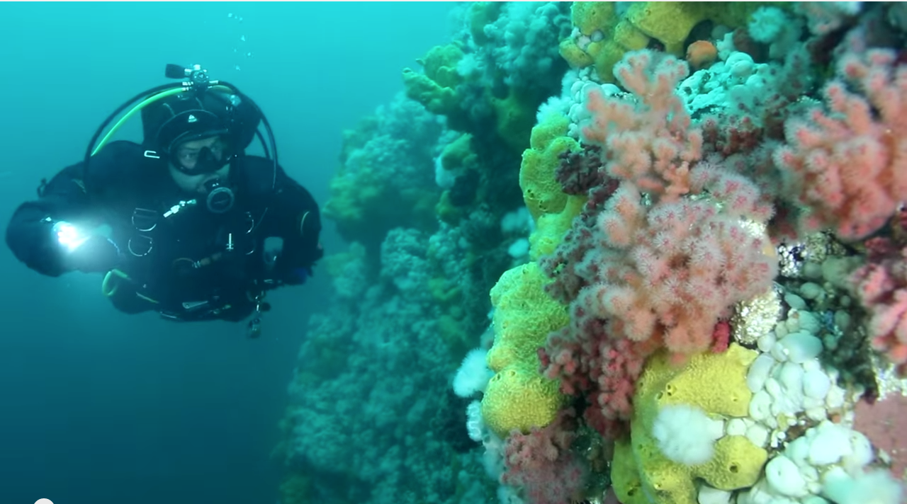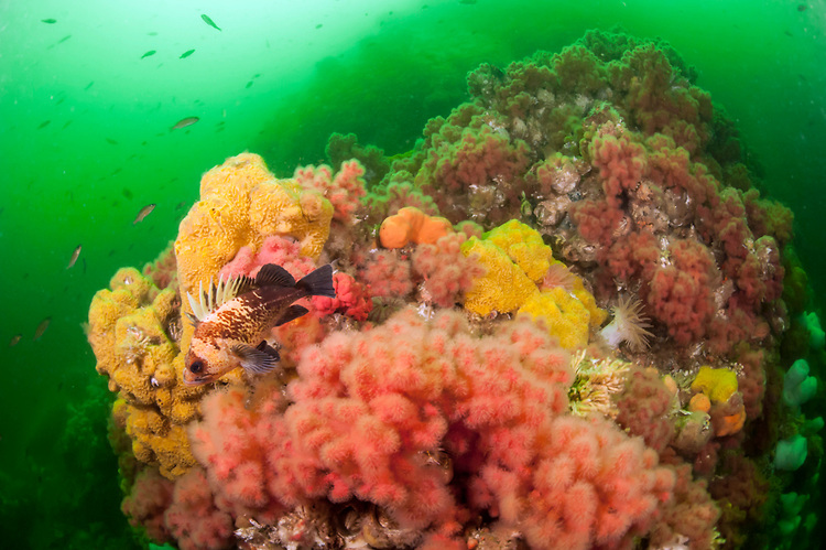 布朗宁峭壁(Browning Wall)被誉为北美最佳峭壁潜水地之一,水下能见度高达30米,想象在近乎垂直的水中深渊峭壁上,琳琅镶满了色彩缤纷的海绵、海葵、海星和珊瑚,是何等壮丽震撼的风景!布朗宁峭壁就是这样一个奇幻的所在,帝王蟹、章鱼、岩鱼在彩虹般的珊瑚礁中安家,绚丽迷幻的色彩,多不胜数的海洋生物,鬼斧神工的峭壁,吸引着潜水者们纷至沓来。