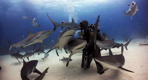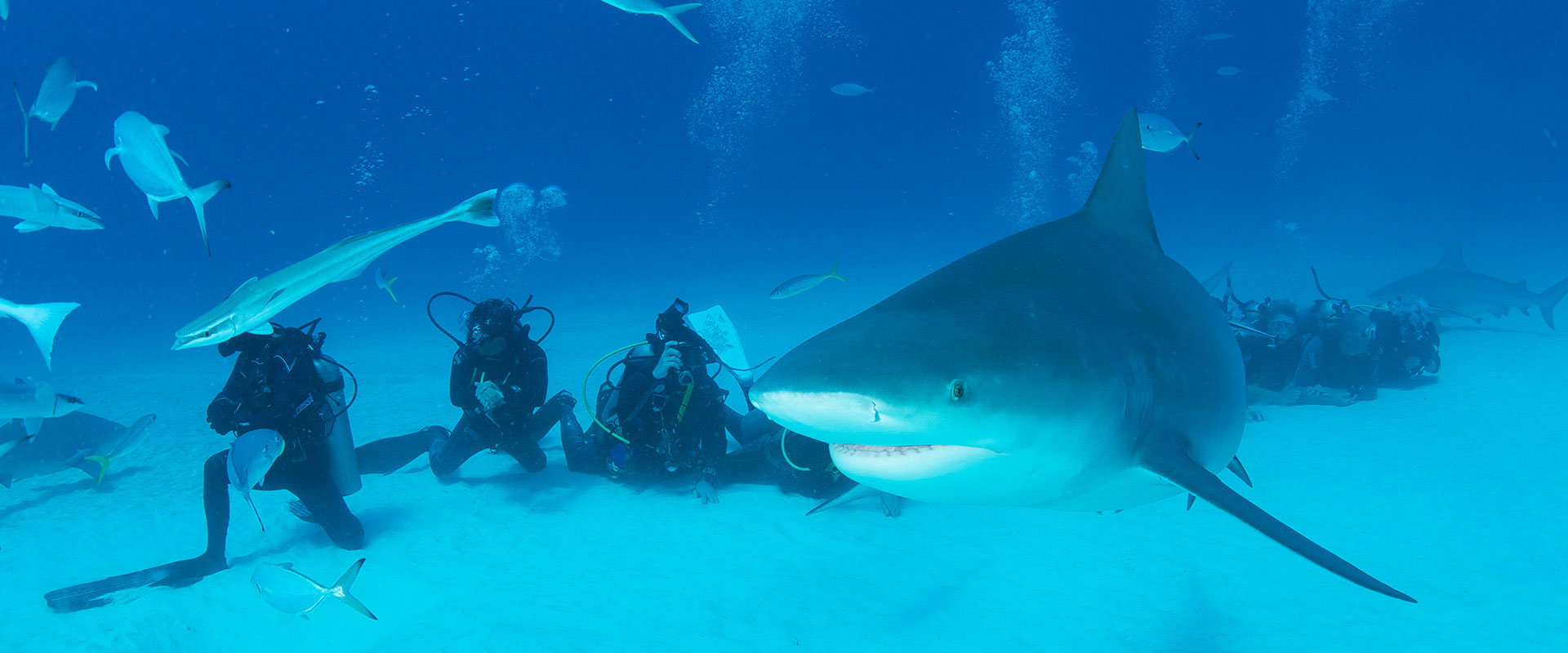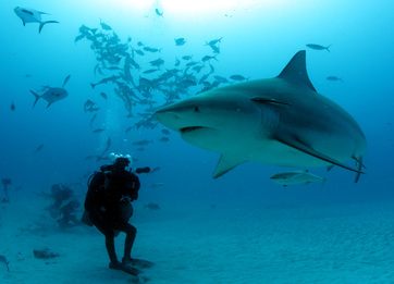 每年11月至3月,距离墨西哥坎恩(Cancun)约一小时车程的卡曼海滩都有一群公牛鯊在岸边游役,原因是公牛鯊总爱回到出生地产卵繁殖后代,而牠们亦是少有可以生活於咸水或淡水的鯊鱼,亦喜爱咸淡水交界以及较温暖的水域。于是,Bull Shark Diving成为卡曼海滩季节性的潜水活动,不少潜水人会专诚到来伏在海底,等候公牛鯊出没,我们亲身体验了,一条粗壮的公牛鯊在身边游过,我说不怕,你信不信?