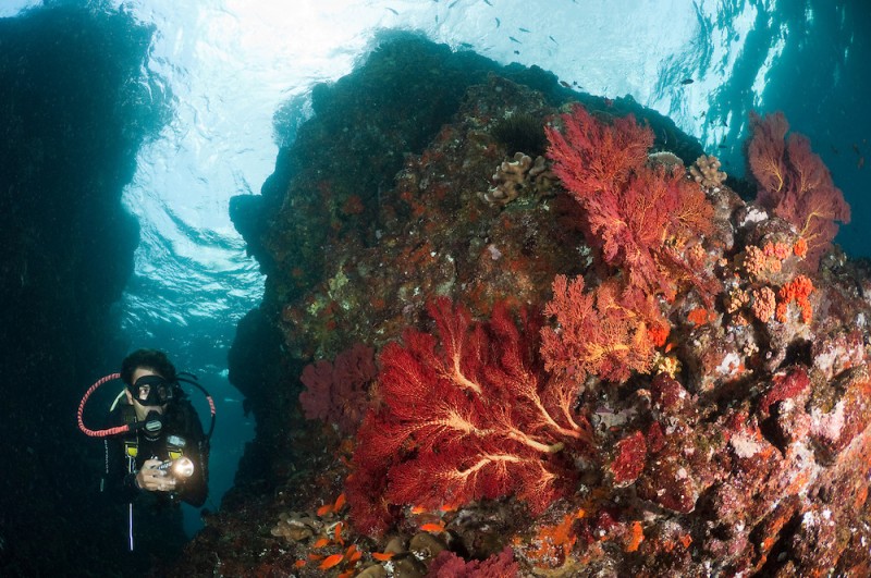 这里海水能见度长年在30米以上,全年不见极端天气,仅在7月,11月,12月会稍多雨水,全年适合潜水,水温平均27摄氏度。在这里您可以看到比人还高的海扇花园、未受破坏的珊瑚花园、成群的Jack Fish、丰富的珊瑚鱼群;有大物蝠鲼(Mantaray),、Eagle ray、Mobula Devil Ray、鲸鱼和翻车鱼(Mola-mola)(季节性),也有种类繁多的微距生物,这里还有海底温泉-HotSpring潜水点,让您体验一下热水从海底冒出来的非一般感受。