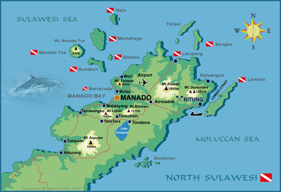位于印度尼西亚苏拉威西岛的东北部﹐向北延伸成更小的岛屿,距离首都越48公里。面积约为台湾的0.84倍。