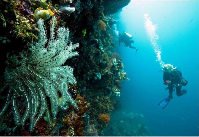 被五大国际潜水组织共同评定为全世界最佳潜水地点。适合珊瑚礁生长,在全世界的珊瑚面积为38万4千3百平方公里,印尼美娜多就有约6万平方公里,占了全世界的15.265%。加上拥有特殊的海底断层地形,让美娜多拥有得天独厚的海洋生态。
