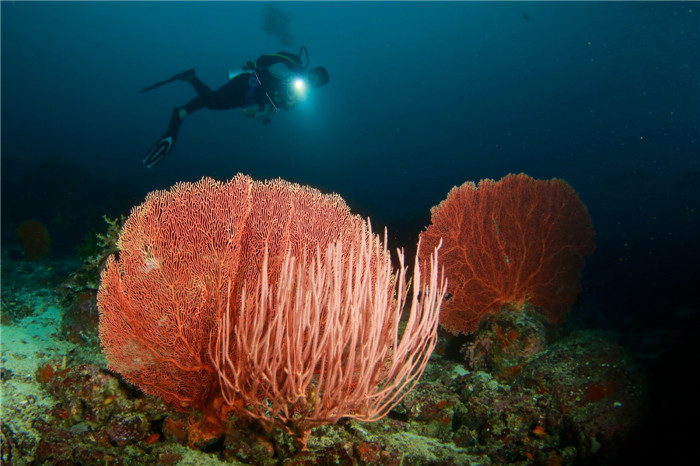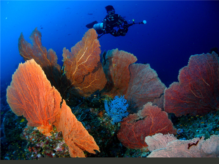这里是海扇花园,最大最完整的海扇就生长在这里,直径达3米宽。