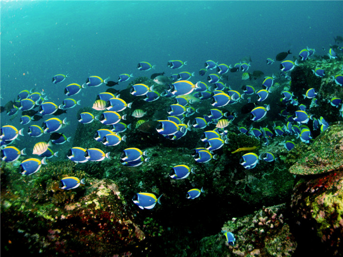 5米三钟停留的时候,你可以在这里看到罕见的群居蓝色鹦鹉鱼,通常在别的地方,你看到的鹦鹉鱼往往只是三两条,像这种成群的,只有在这里才能看到。