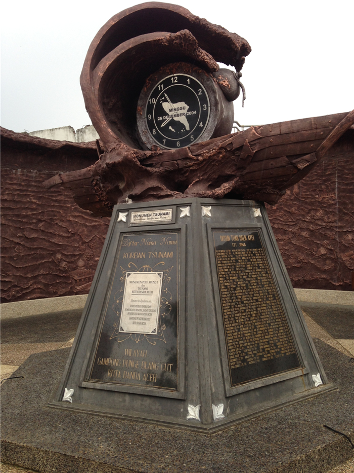 2004年印度洋发生的那次骇人听闻的海啸,班达亚齐是受灾最严重的地方。当时有一艘2600吨的柴油发电轮被40米高的海浪冲离海岸8公里,在如今纪念馆的地方停下。由于它救下了当时爬上船的国民而被誉为方舟。海啸过后,印尼政府在世界各界的帮助下,在方舟停下的地方建起这座海啸纪念馆,并开始整个国家的重建。纪念馆内除了这艘巨轮,还有它所经之处留下的一些断壁残垣,时隔十年,人们仍可以从这些历史痕迹中感受到当时那场海啸的来势之凶猛。