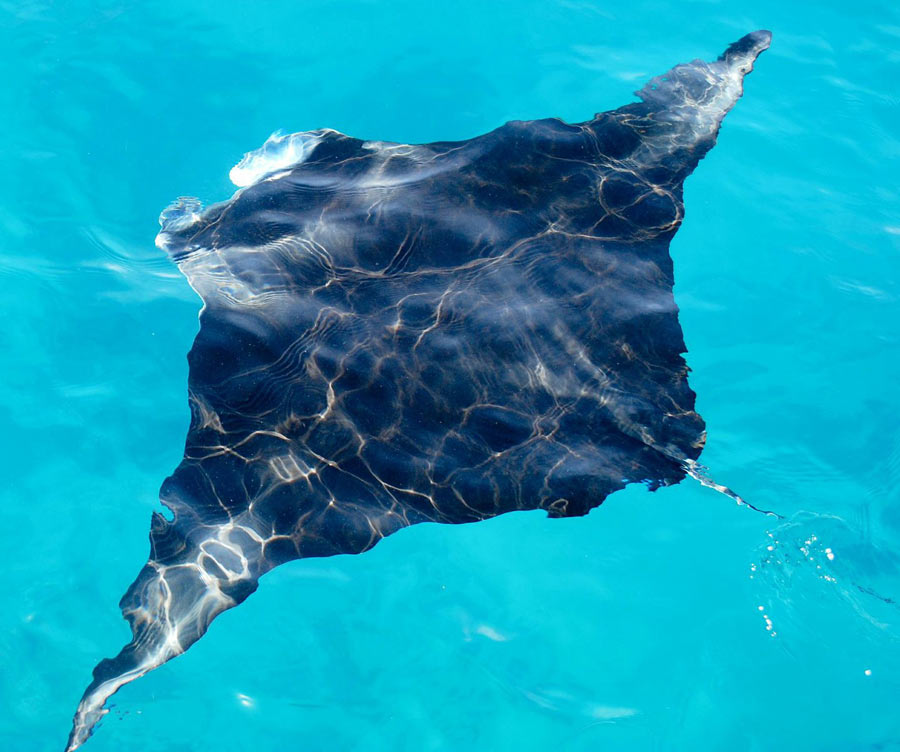 整个行程中,最让人记忆深刻的是在圣格拉奇岛(Sangalaki)看到蝠鲼(manta,俗称“魔鬼鱼”)列队通过。圣格拉奇岛以蝠鲼著称,因而这里被称之为 “蝠鲼之岛”。岛的东部潜点有魔鬼鱼大道、魔鬼鱼天堂和魔鬼鱼流动站,魔鬼鱼常聚集在这个区域进食,这时鱼的鳃会大大地张开。