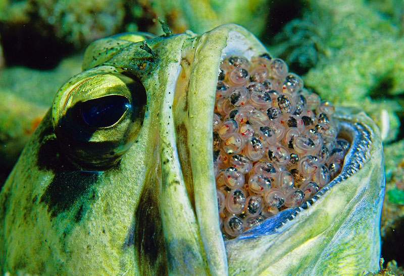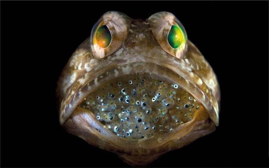这种鱼的奇特之处在于不是雌性的鱼产子,小生命是由雄鱼用嘴来哺育的,据说是雄雌颌颚鱼在洞中完成交配后,雄鱼便用嘴将受精卵收集起来,在嘴中将卵孵化;成熟之后,颌颚鱼爸爸便会将鱼宝宝从自己嘴里吐出。