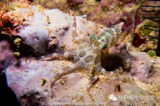 第一次Check Dive下那条长长的Jetty就看到了这个剧毒的小玩意儿。印尼的蓝环章鱼和我在澳洲看到的还真不一样,小很多,但是颜色更加鲜艳。