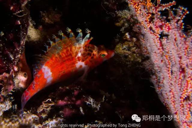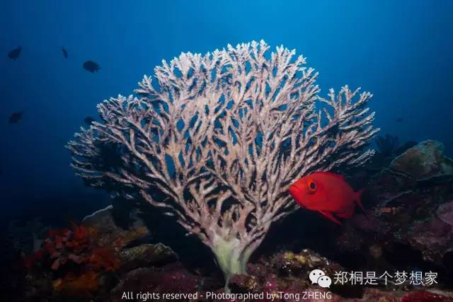 硬珊瑚上面的鱼群,这种红色小鱼很怕闪光灯