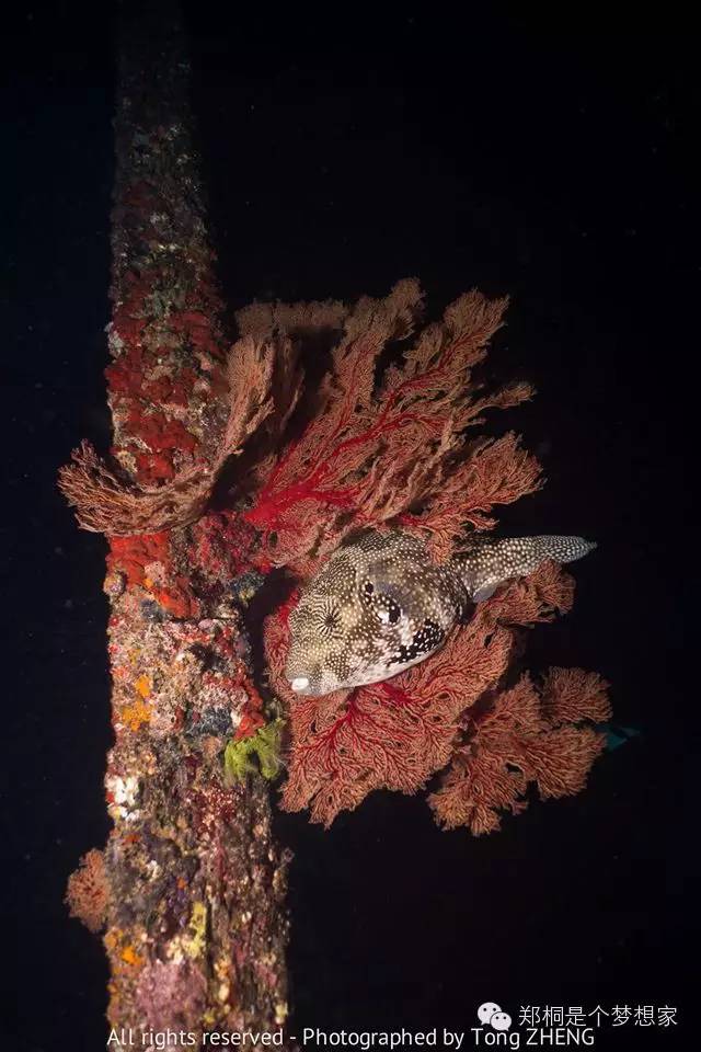 我估计只有潜水员,而且是比较有经验的潜水员,才看的出这只Stone Fish吧?找到眼睛和嘴巴了么?这也是在码头底下拍摄的!