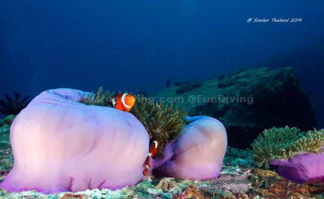 大部分潜水员来斯米兰的主要目的就是这个潜点了吧!潜点位于泰国Andaman海最北部的素林国家公园,往北不到5海里就是缅甸海域。潜点形状像马蹄形,在低潮的时候潜点最高处的礁石会露出水面大约1米左右,涨潮时则淹没在水下。你能看到各种颜色的软硬珊瑚生长在珊瑚岩上面,各种鱼群穿梭其中。最为著名的就是软珊瑚,它们密密麻麻地像地毯般覆盖了几乎整个潜点的珊瑚岩,美轮美奂。生活在这里的鱼群们也是数以万计,海狼群,杰克鱼群,大眼鲷鱼群与沙丁鱼群都有可能遇到。由于靠近外海,在每年的2到4月份之间还能经常看到路过此处的鲸鲨。这个潜点排名泰国第一,当之无愧。