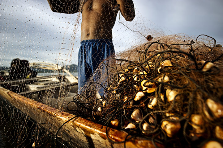 巴达·伊普斯(Bada Ipus)正在起一张大网,他说自己年轻时候用的网要小很多,但收获却不少。