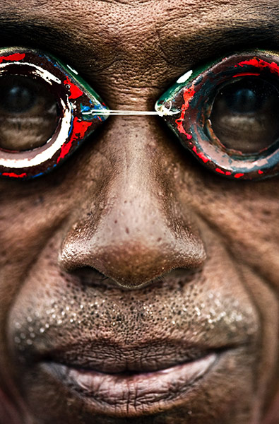 作为常年与海洋打交道的海上牧民,住在印尼苏拉威西岛(Sulawesi)的伊姆兰(Imran)潜水技术非常高超。为了避免被咬到,伊姆兰将自己的拇指和食指放在这只箱鲀的眼窝上,一旦鱼眼被蒙上,伊姆兰会带着它游到自己的船边。