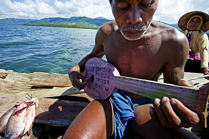 帕克·斯丁·萨利(Pak Siding Salihing)正在即兴演奏。传统的巴瑶宇宙论将万物有灵论和伊斯兰教合为一体,揭示了人与海洋之间的复杂关系。