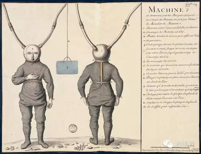 法国贵族Pierre Remyde Beauve发明的潜水服(1715)