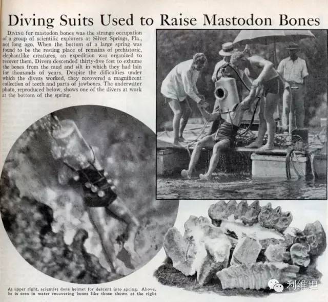 用来打捞乳齿象骨头的潜水头盔。(1933)