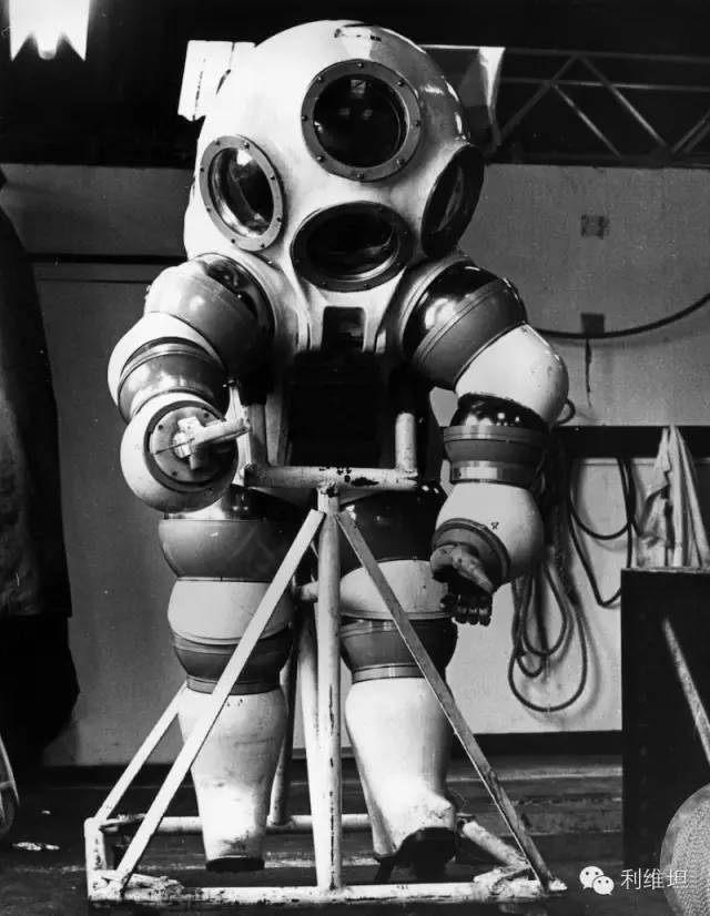 此款气压式潜水衣能让潜水员在300米的水下不限时的工作,解压的过程也很短暂。(1974)