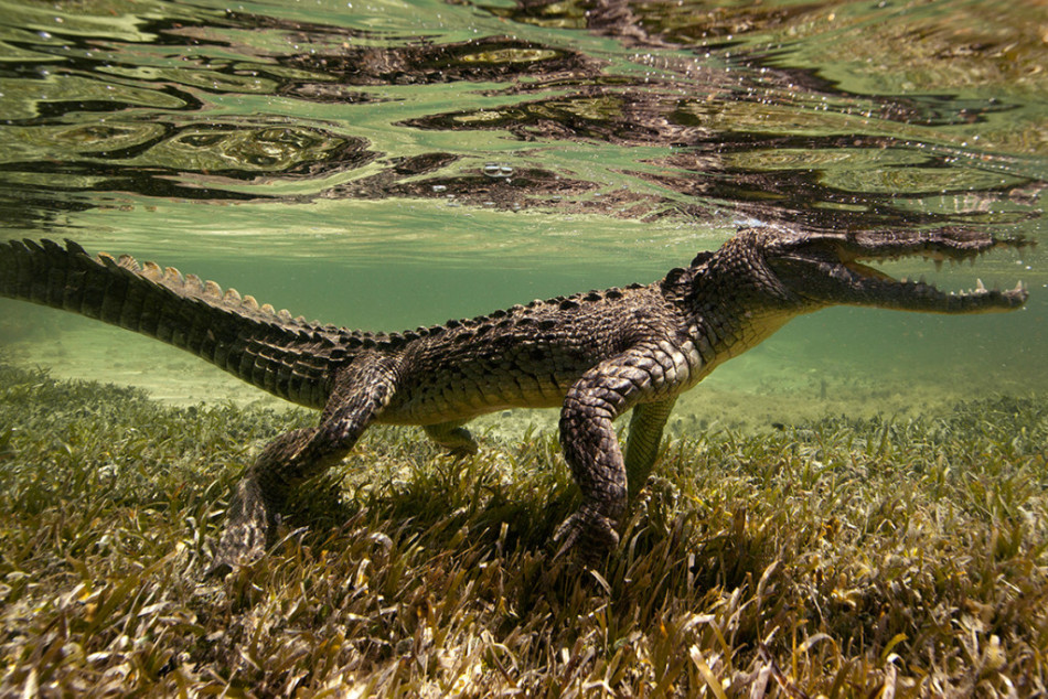 还有一次,他在墨西哥东南海岸的钦乔罗浅滩拍摄美洲咸水鳄时,鳄鱼张开血盆大口向他扑来,但豪瑟定在原地不动(当然,他站在了鳄鱼够不到的位置),直到鳄鱼们最终适应了他的存在。