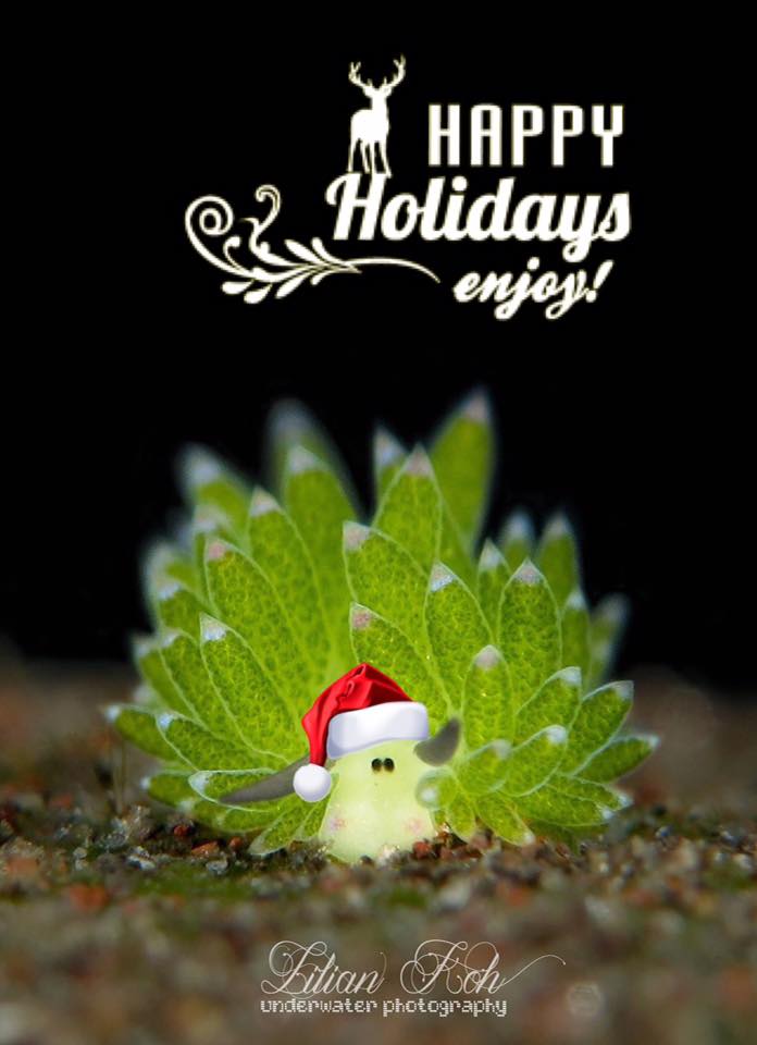 Nudibranch (Costasiella sp.) Location: Tulamben, Bali Camera: Canon G15 Housing: Recsea Strobes: Inon Z240 x 2 Diopter: Subsee +10, Inon UCL-165 M67 Settings: ISO80, F/7.1, 1/100 Photo by Lilian Koh