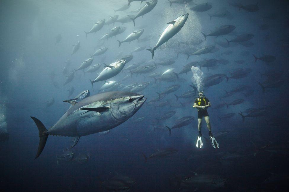 这些大西洋蓝鳍金枪鱼单条重量可达400公斤,其游行时速可达70公里。