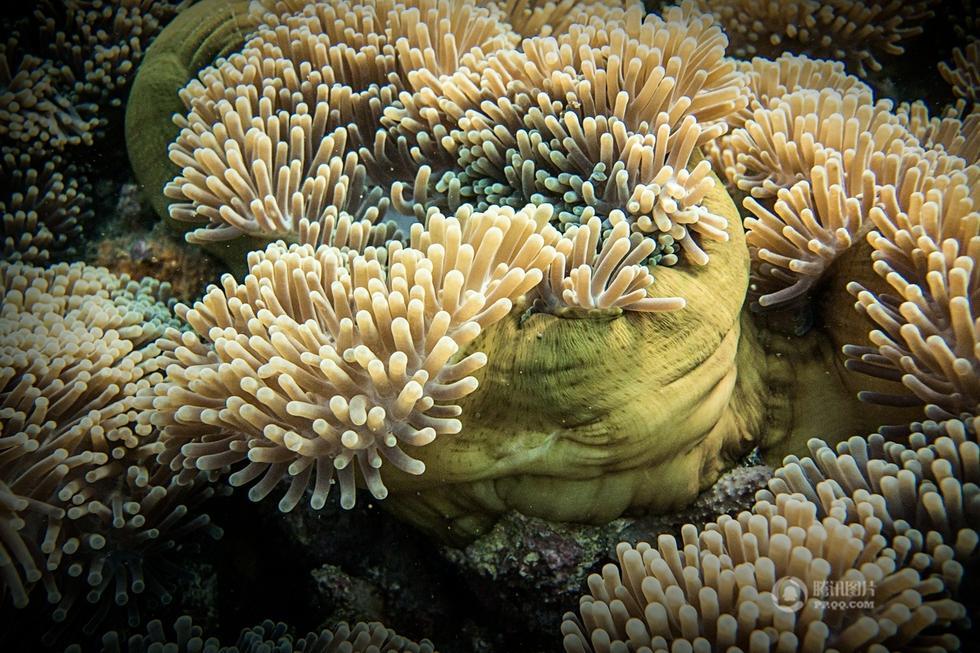 从海洋里的庞然大物到隐匿在大海深处的微观世界,从灵动的鱼群到来自于海底的思考,镜头中的30余种海洋生物,重新集合在水下共同展出,微观了海洋,拉近了物种,力图全方位展现出海洋世界的奇妙与不同。此外,展览还利用水下展厅的玻璃舷窗播放来自诗巴丹龟冢内的洞潜纪录片,观看者需要潜入水下透过玻璃窗观看,仿佛置身于神秘的海洋洞穴。图为展厅内部。