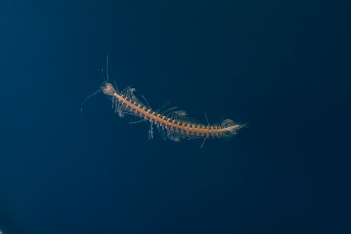remipede是一种近3亿年不变的“活化石”。它捕杀的猎物主要是洞穴虾等甲壳类动物,通过尖牙把毒液注射进杀死它们。
