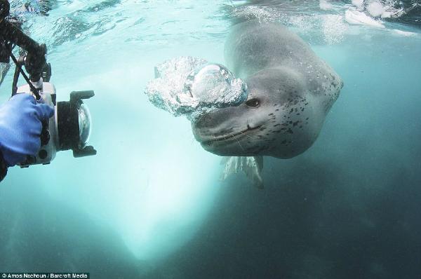 摄影师 Allen 的团队花了整整三天来用这只假海豹诱饵引诱鲨鱼出水捕食。最后,这只不明真相的大白鲨就这样落入了人类的圈套。