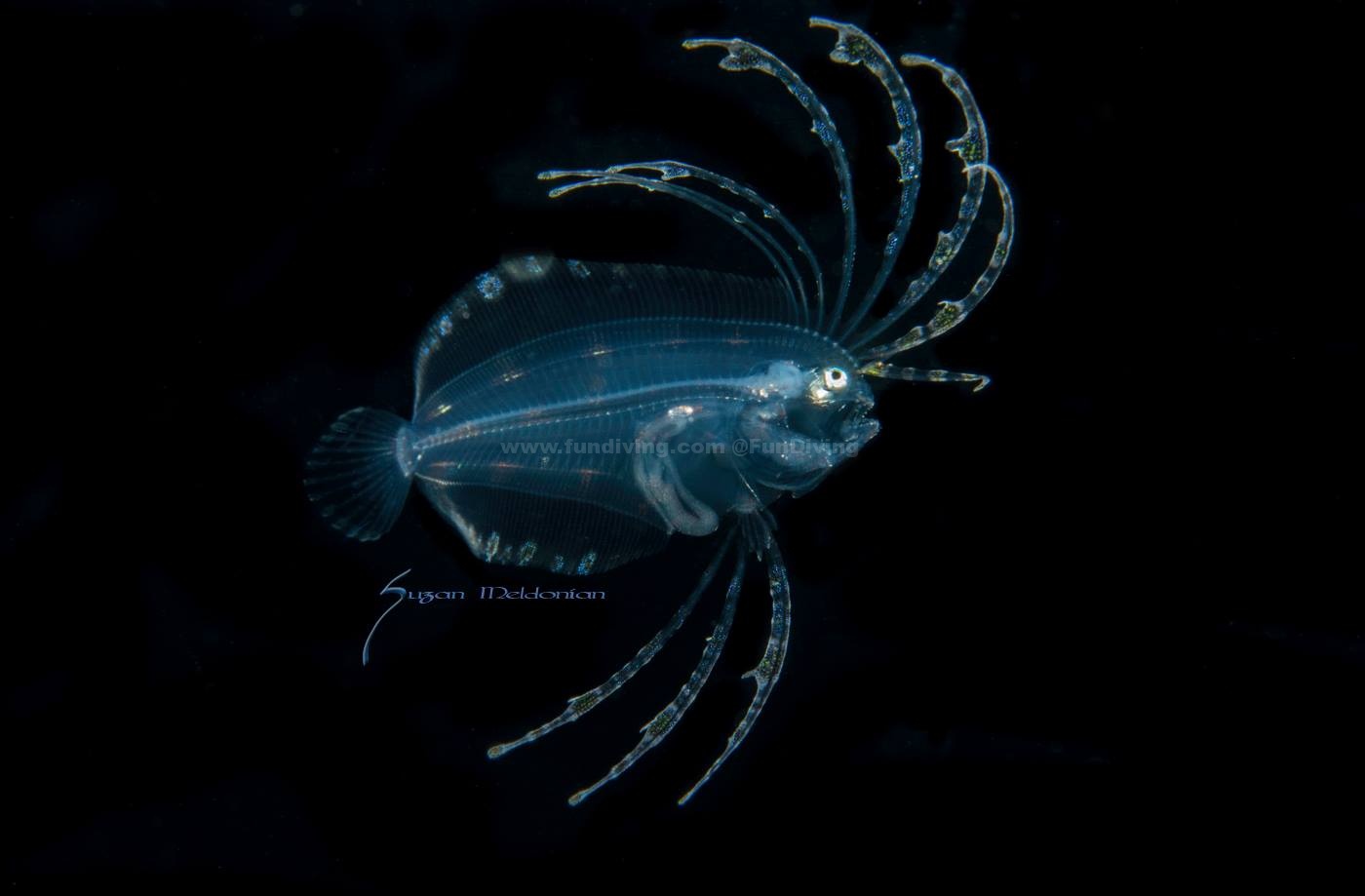 Dusky Flounder larva Nikon D7100, Nauticam housing, dual inon z220s, 1/250th, F/20 ISO 160, 60mm nikkor + 10x diopter Photographed in Florida in the Gulf Stream Current off West Palm Beach. Photo by Suzan Meldonian
