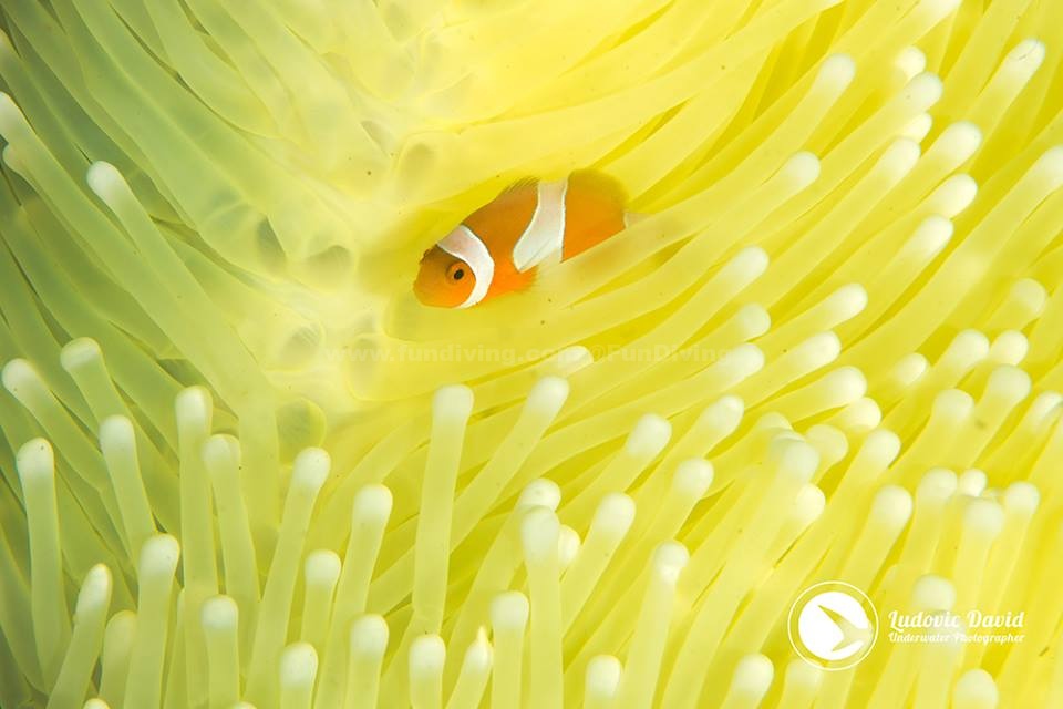 Amphiprion ocellaris "in a yellow ocean" Depth 14 m Date: 09/04/16 Location: Sanur, Bali, Indonesia. Camera: Canon 7D Mark II Lens: Canon EF 100mm f/2.8L Macro IS USM Housing: Aquatica Strobes: Hartenberger 2x250W Settings: 1/125 f/18 Iso100 Photo by Ludovic David