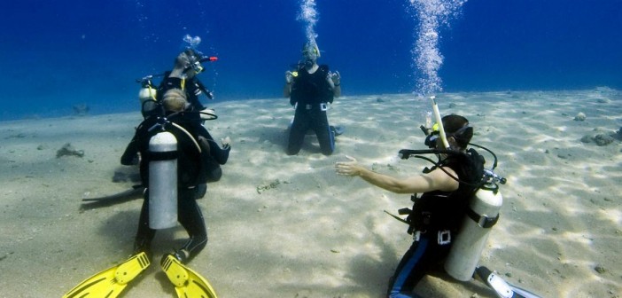 潜水前应先了解一些潜水的知识,学习潜水装置的正确运用非常有必要,比如呼吸管和调节器的使用,水面休息方法,紧急情况处理等等。加入正规潜水俱乐部是个最佳的选择,这里有正规的课程设置,顶级的潜水装备,一对一的专业教练。俱乐部不仅只教授具体的潜水技术,往往还要学习潜水理论、水中潜水手语等。专业型的培训还需要学习流体力学、浮力、平衡、温度、视觉、声学、鼻窦、耳部的解剖等物理、生理及医学知识。