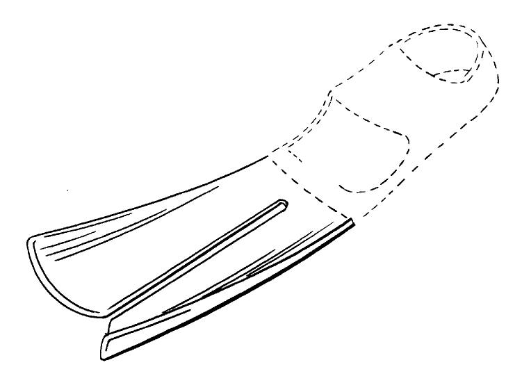 分叉式脚蹼由美国人Robert B. Evans 发明,并于1998年3月3日注册了专利,有效期14年,专利号码:US00D404456S。